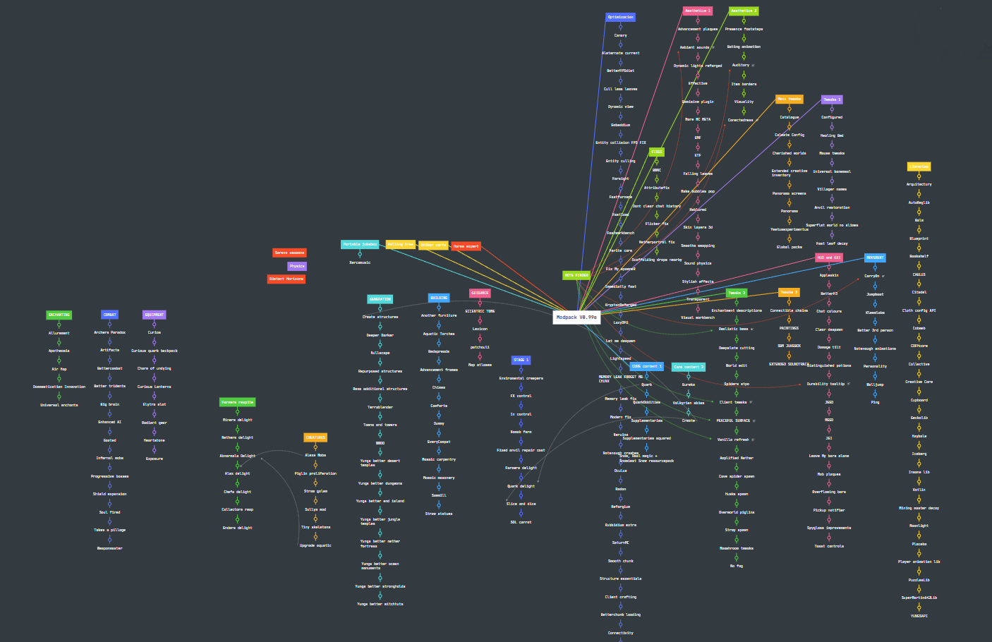 Game design: The ultimate goal has been creating a bug free, well-rounded vanilla experience where all systems interact with each other, and integrate seamlessly into the vanilla experience. As core aspects of Minecraft, the modpack focuses on facilitating creativity and player expression in building and adventure, and having these features expand as the player takes on progressively more difficult combat challenges and exploration.